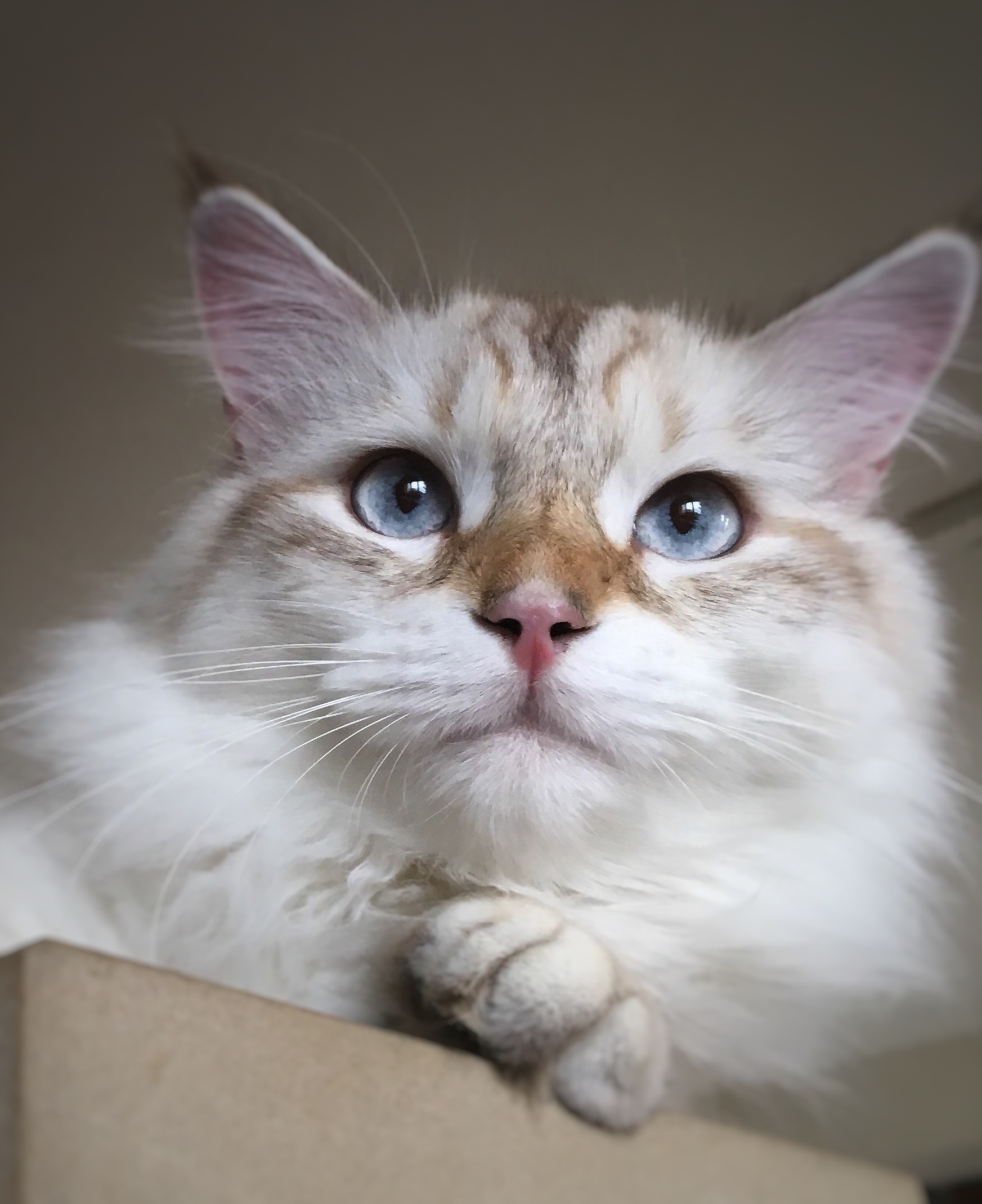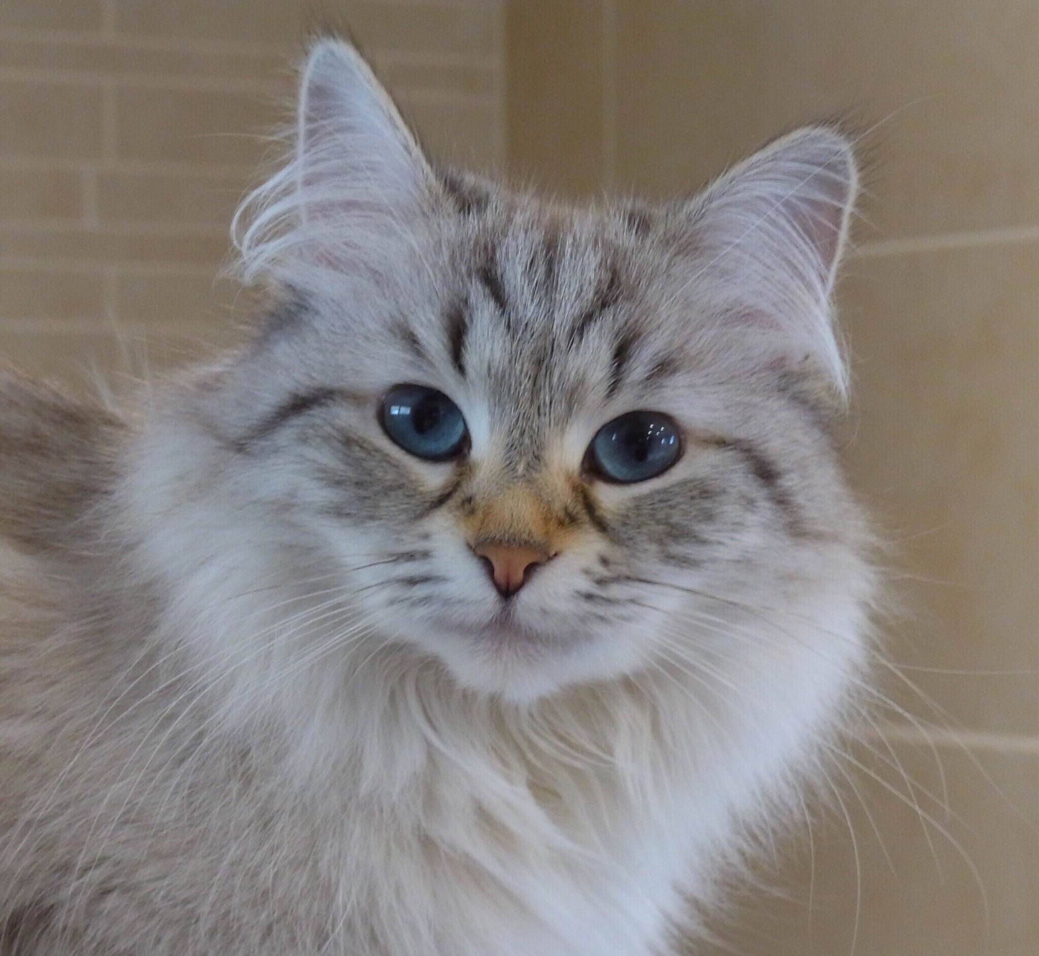 | Le Neva masquerade est une variante de couleur du chat sibérien. Les Sibériens colorpoints sont apparus en même temps que les Sibériens à couleurs traditionnelles (brown tabby, silver tabby, red tabby, etc.). Les premiers chats Sibériens étaient en fait des chats des rues et quelques passionnés ont décidé d'établir un standard et de faire un programme d'élevage de ce chat là. Tous les chats de rues n'entraient pas dans la catégorie "sibériens". Tout d'abord les croisements avec des Persans colorpoints et / ou des chats sacrés de Birmanie ne sont pas possibles. Pourquoi, tout simplement parce que le premier Persan colorpoint a été importé en Russie en 1991 et les Birmans sont arrivés encore plus tard alors que la race et la couleur « point » du chat Sibérien était déjà inscrite au standard depuis 1990. Cela signifie par ailleurs, que ces chats là existaient avant 1990, donc dans les années 80. Pour savoir pourquoi les colorpoints sont apparus dans cette race et non chez le Norvégien ou le Maine coon est simple. Pourquoi une telle diversité dans les couleurs chez le chat Sibérien ? Cela s'explique de façon historique. En effet, après la seconde guerre mondiale dans la région de St Petersbourg (Russie), il ne restait plus beaucoup de chats dans la ville. Par contre, souris et rats proliféraient. C'est pourquoi, des centaines de chats ont été attrapés dans toute la Russie puis envoyés à St Petersbourg. Parmi ces nombreux chats, il devait y avoir des colorpoints mélangés avec d'autres couleurs. C'est donc une race naturelle riche en couleur! |