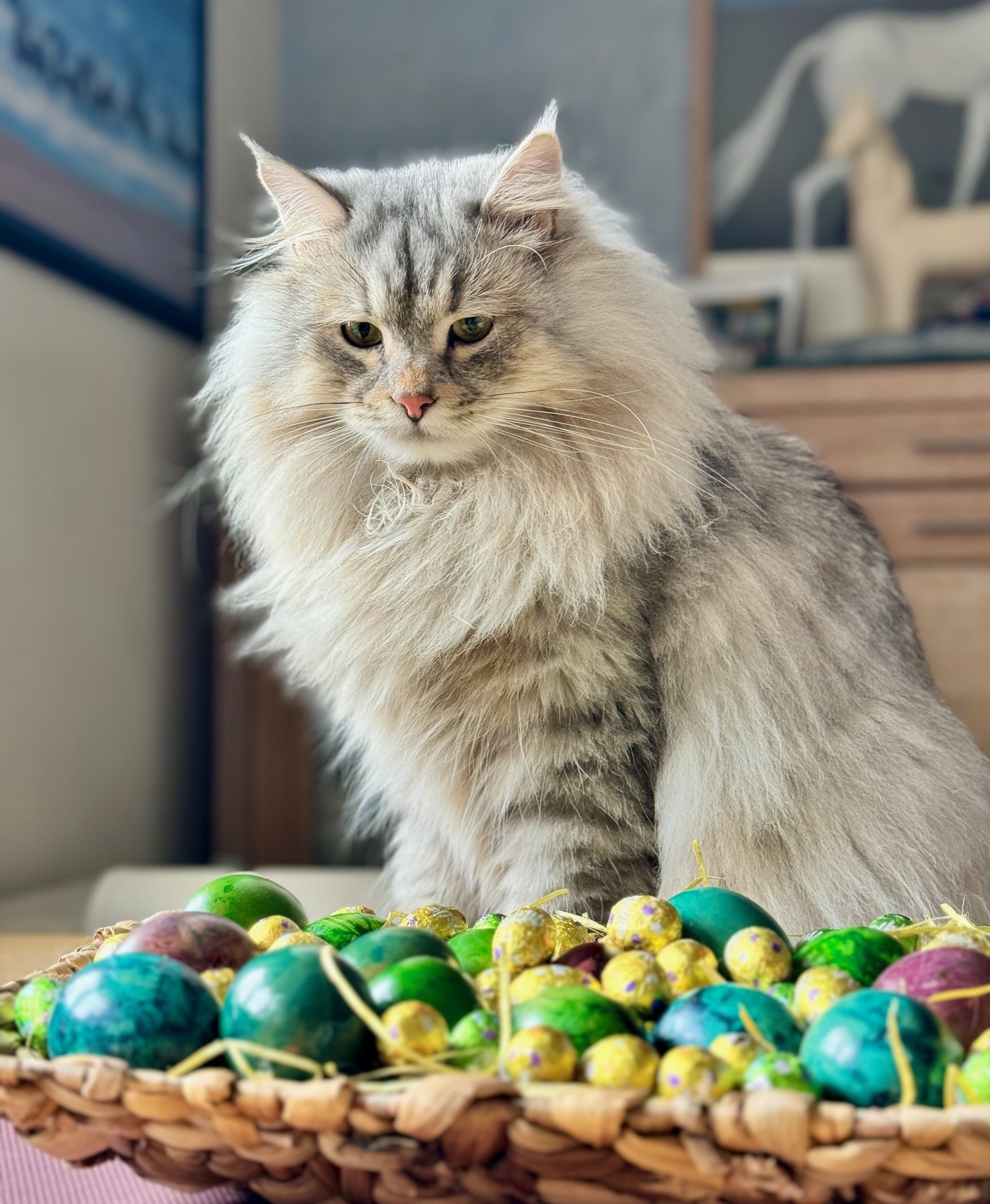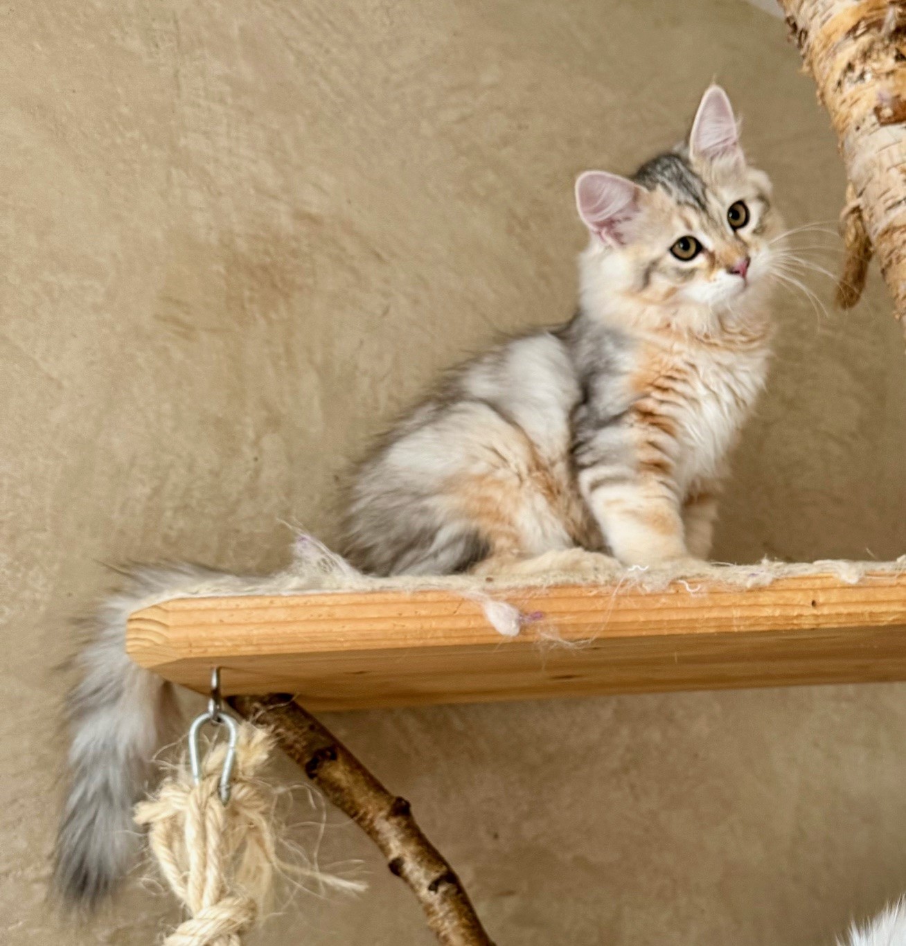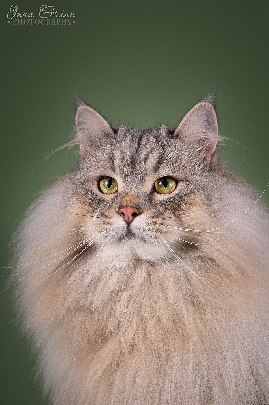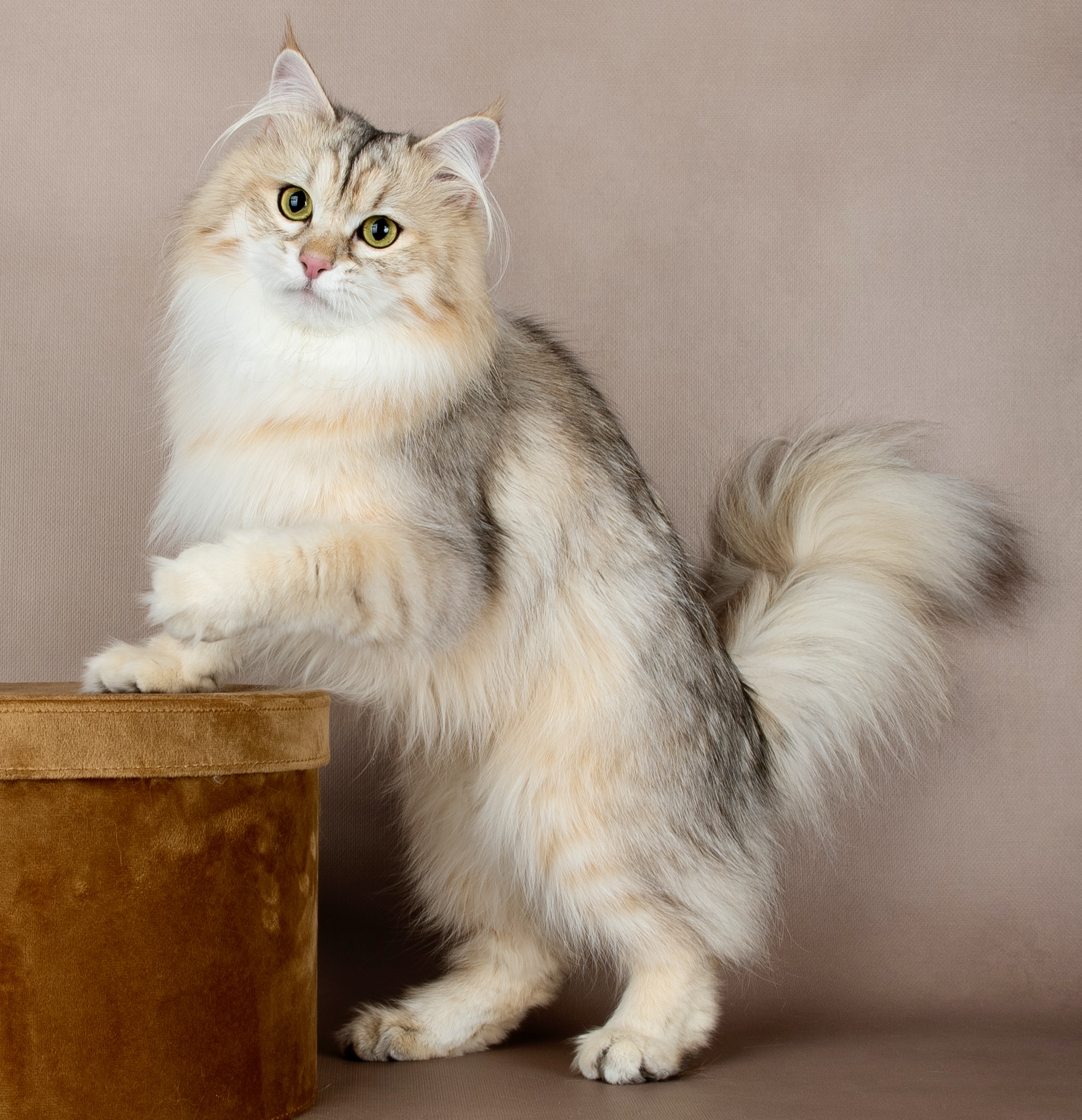 Le chat sibérien est musclé et de taille moyenne. La longueur du corps est légèrement supérieure à la hauteur. Le cou est court et les membres, puissants, sont de longueur moyenne. Ce chat doit toujours avoir des touffes de poil entre les doigts. La queue, large et forte à la base, se termine par une extrémité légèrement arrondie. Une tête triangulaire, courte et trapue est idéale. Le nez est large et légèrement concave mais dépourvue de stop. Les joues sont puissantes et massives; le menton doit être ferme et prononcée. Les oreilles sont de taille moyenne. Leurs extrémités sont arrondies avec des plumets, et l’intérieur des pavillons doit être couvert de poils. Les yeux sont grands, ovales et très écartés. La fourrure est mi-longue ou longue avec un sous-poil serré et des poils externes de protection plus longs, hydrofuges et gras. La fourrure est notablement plus courte sur les omoplates. De nombreuses variantes de couleurs existent. Le chat sibérien ressemble dans son comportement au chat des forêts norvégiennes. Il est calme, sociable et équilibré mais il n’aime pas être traité trop familièrement. |